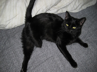 As the party started to wind down, I collected my thoughts. (I'm happy to be a big sister to Grayson, even if he is still a bit of a pest. I'm thinking that in a few more months he'll be fully grown and hopefully pestering me less. I'm also happy mom has so many nice friends who pet me, talk to me, and let me smell their hair.) When the last guests left, mom gave Grayson a big hug and told him how much she loves him. She tells us this all the time, but it's always nice to hear it. So, happy birthday to Grayson. The next birthday is in July, and it's Zorro's 8th. After that, no more cat birthdays until April!"